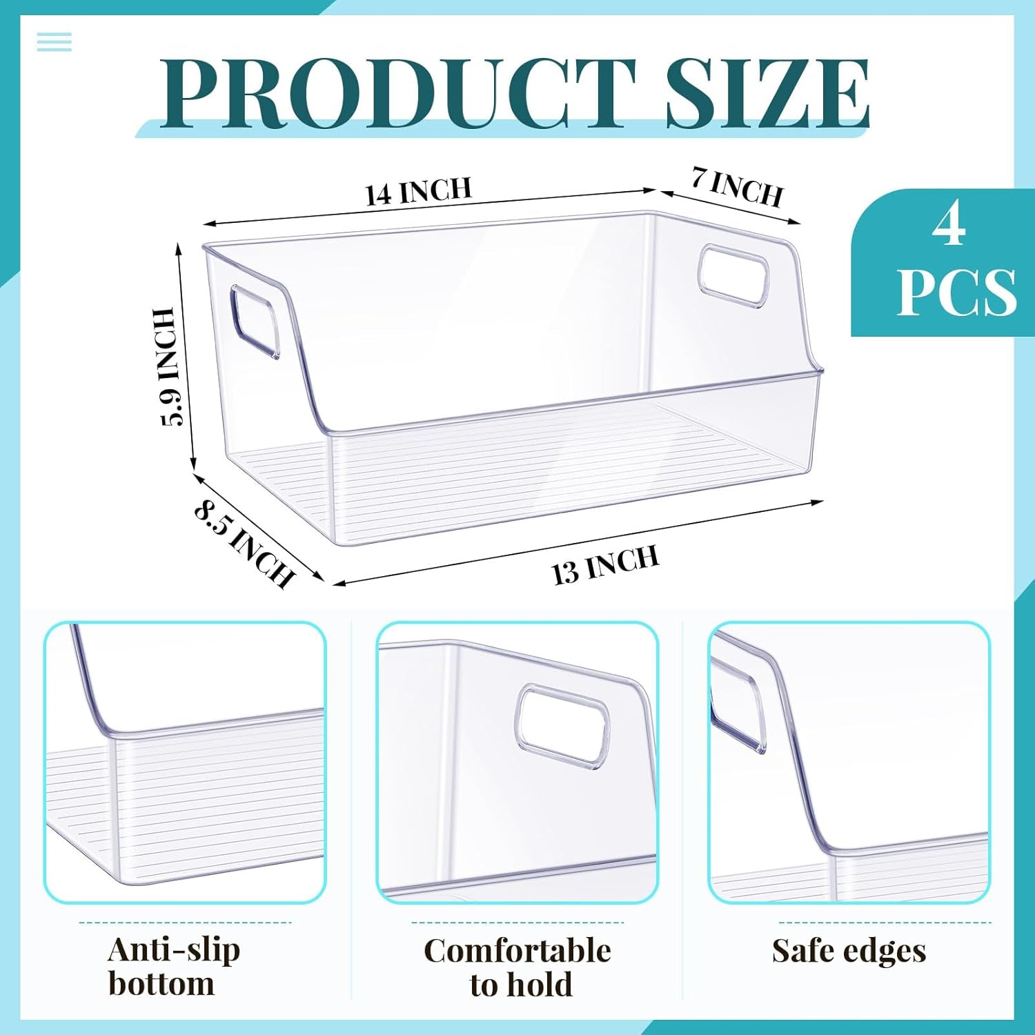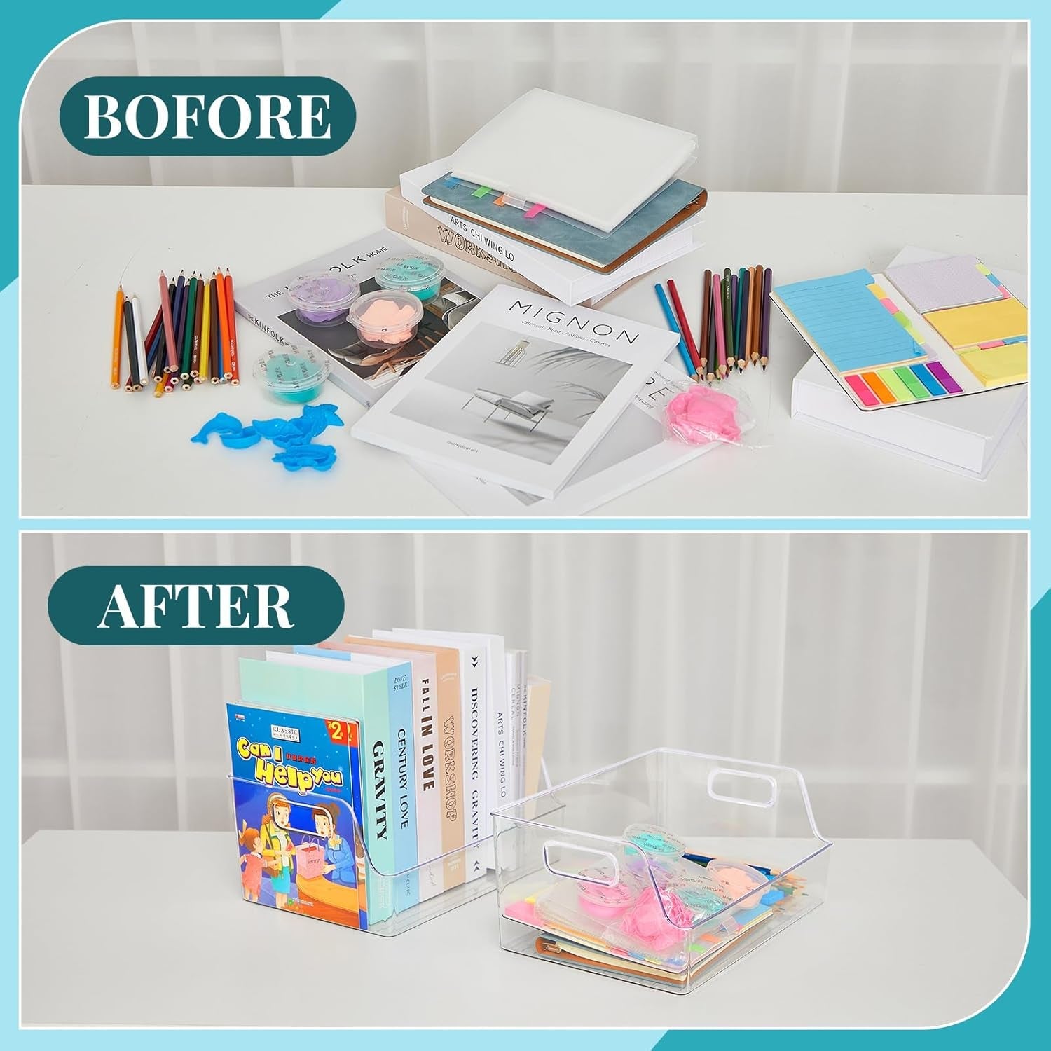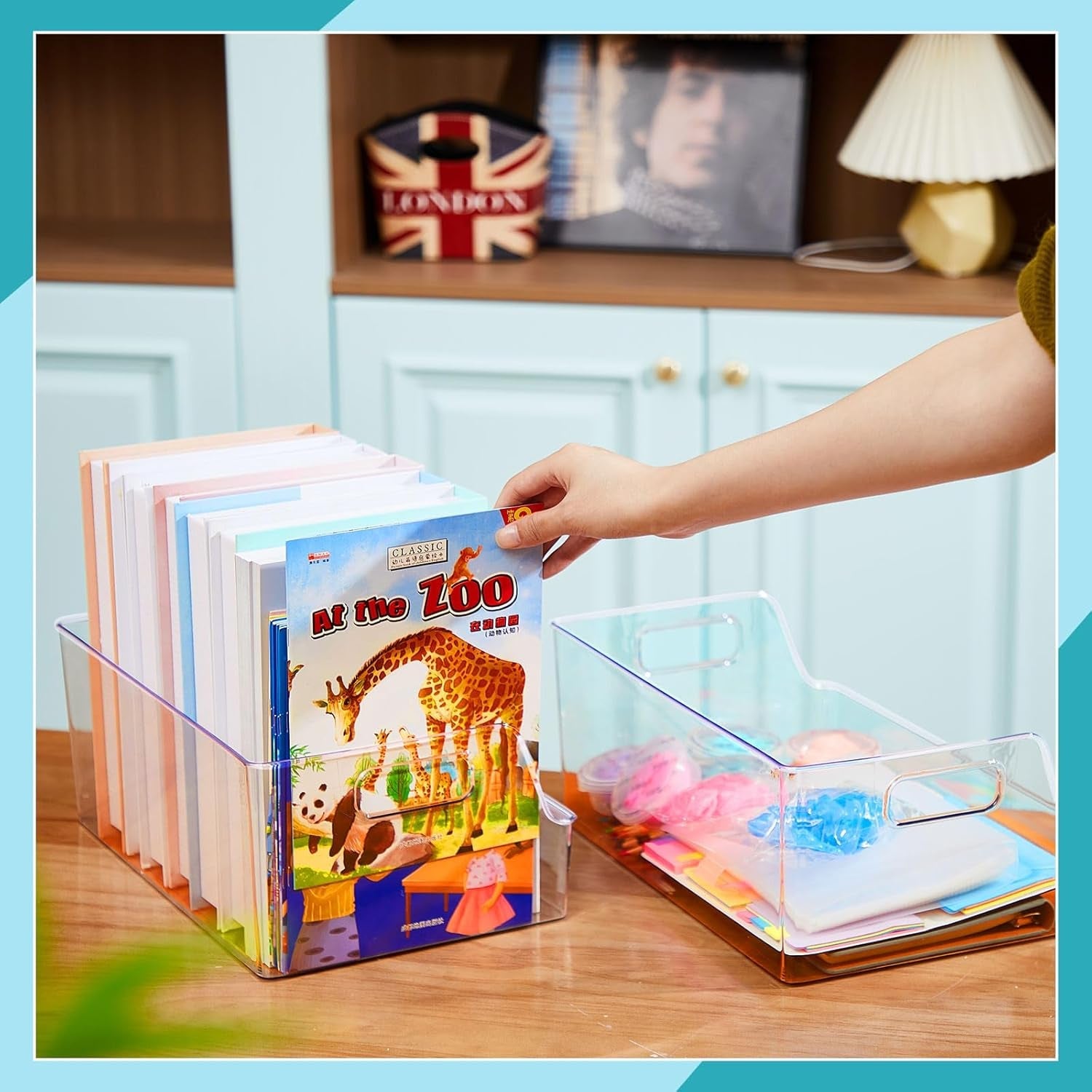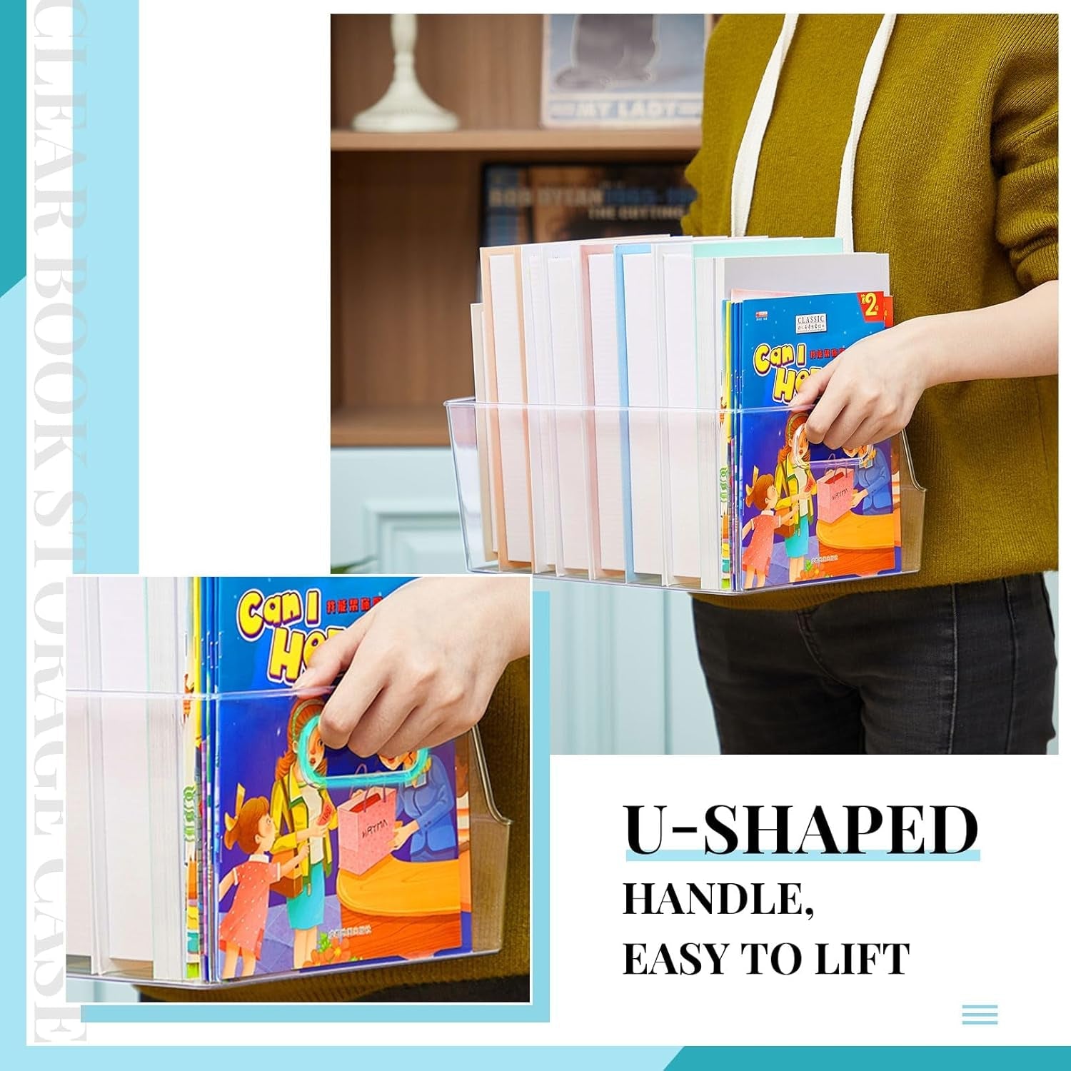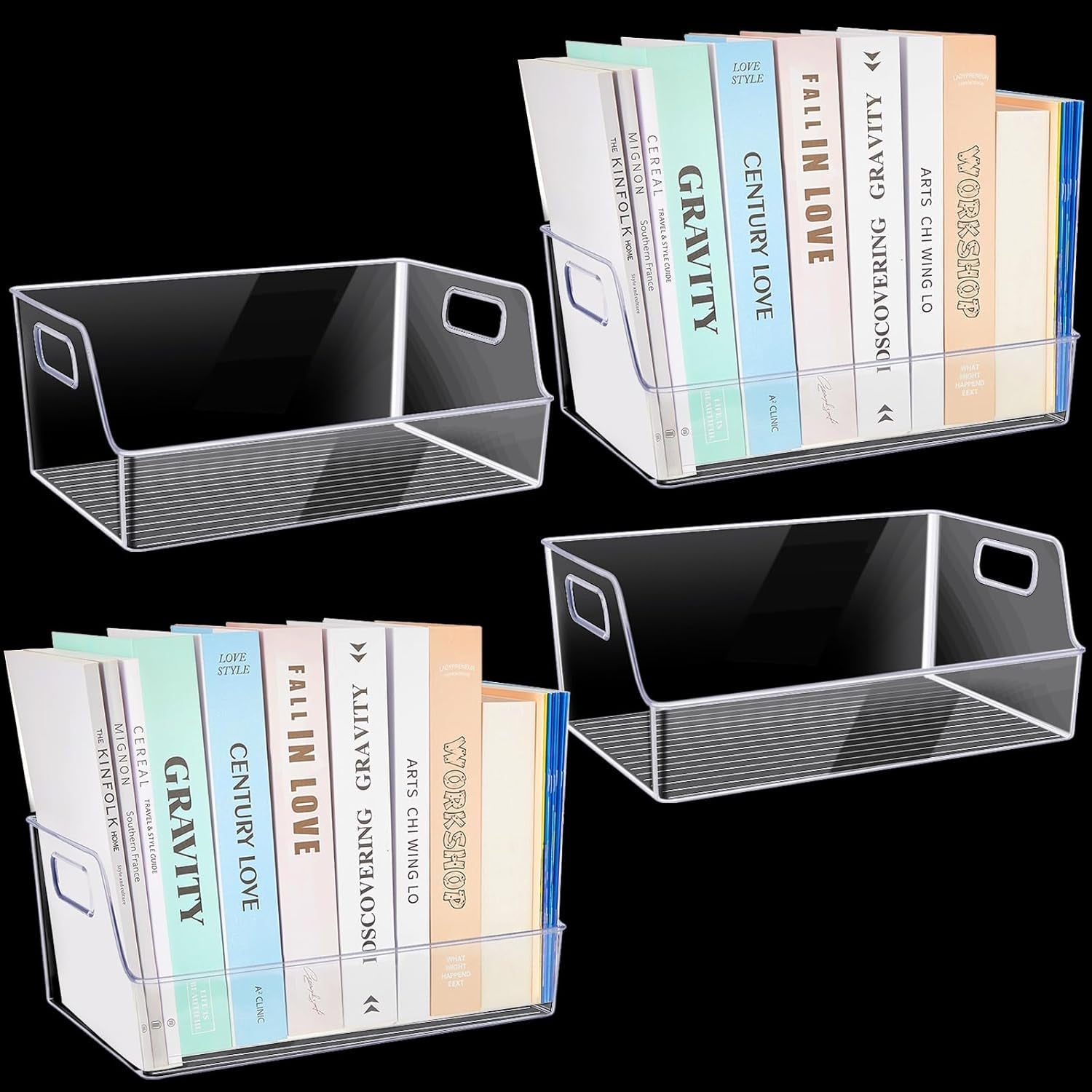 4 Pcs Clear Large Storage Book Display Case 13 X 8.5 X 5.9 Inch Book Organizer Stackable Bookcase Display Storage Containers with Handle Office Bookshelf Organizer Rack for Cds Magazine Books