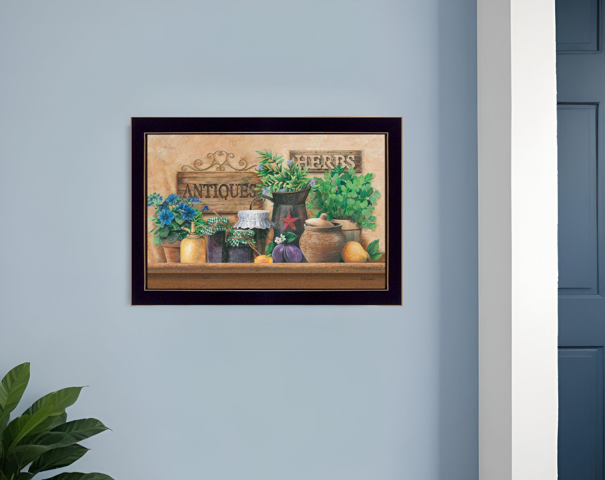 This antiques and herbs black framed print kitchen wall art will add a beautiful decorative accent to your decor. This print is a visual artistic expression that allows you to decorate your space in style. Reproduced for you on paper, this hanging decorative accent will be a trendy and fashionable way to dress your walls. Adding this hanging wall art to your space to make your room feel more finished and attractive. Utilize this opportunity to create a focal point in the room with this fabulous wall decor option. 10-inch H x 14-inch W x 1-inch D