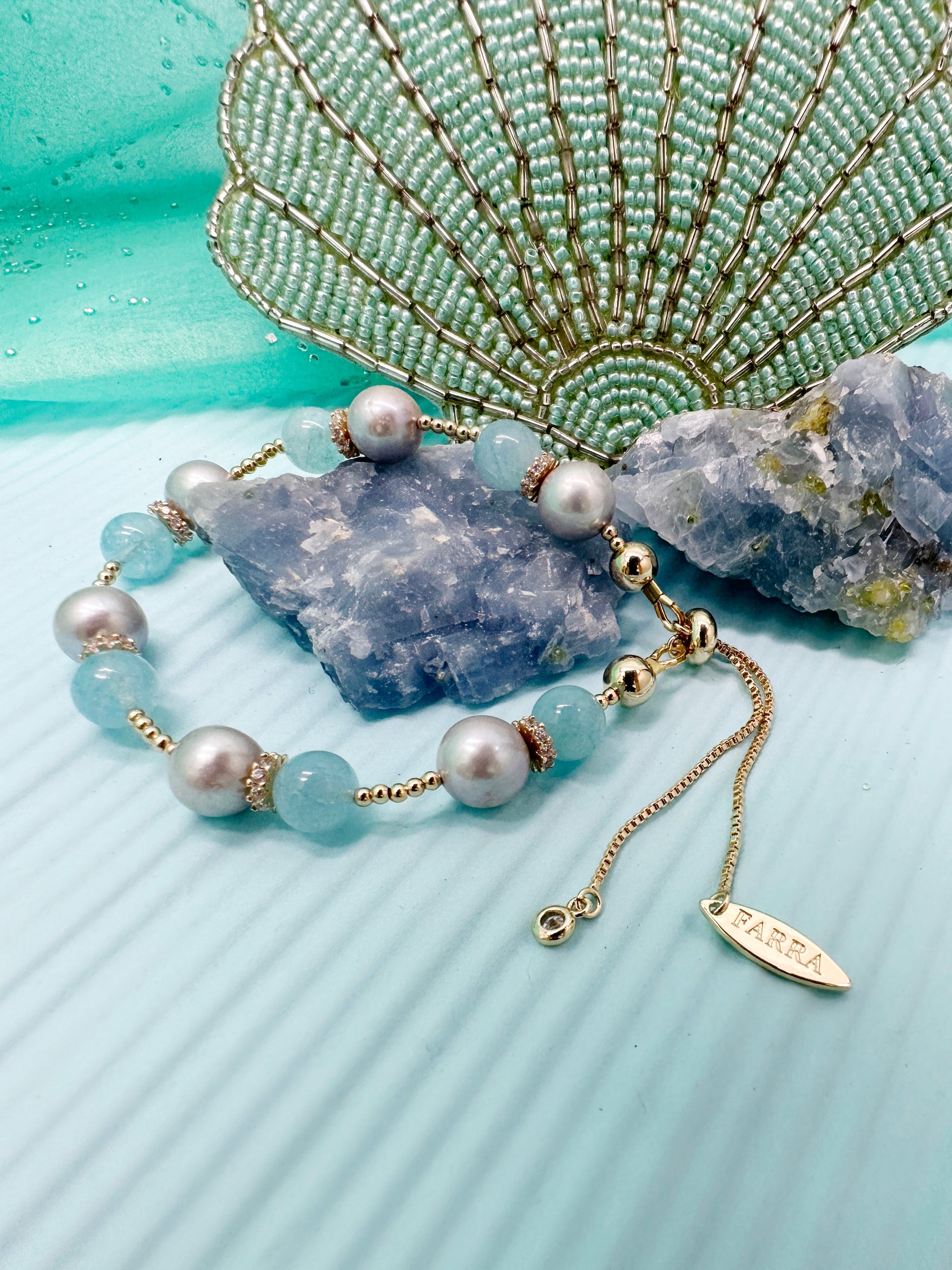 The freshwater pearls add a touch of elegance and refinement to the bracelet. The gray color of the pearls creates a sophisticated contrast against the blue aquamarine, making this bracelet a versatile piece that can be worn with various outfits.