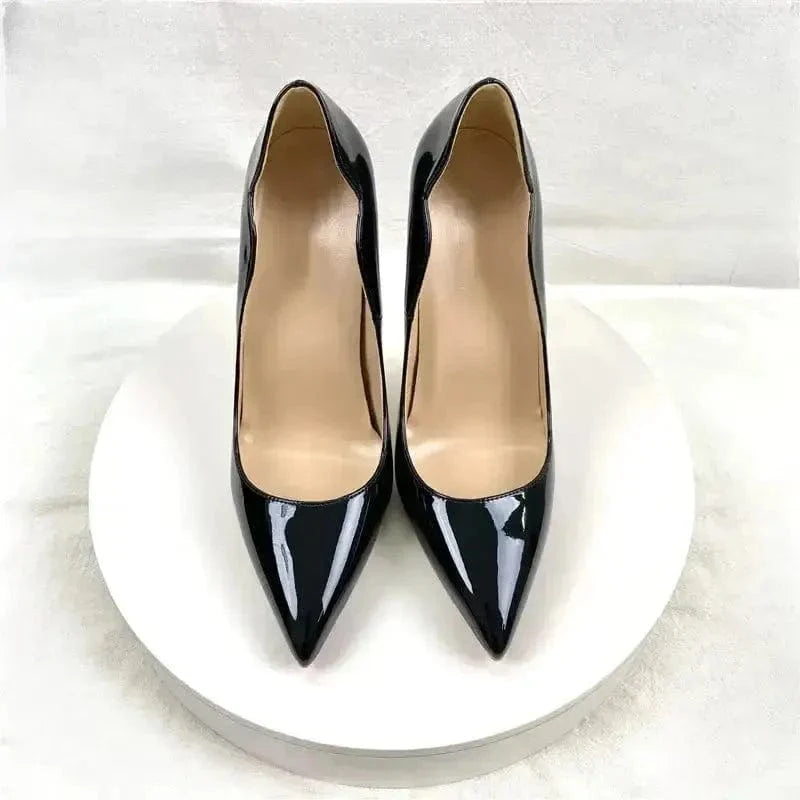 Elevate your style with these black lacquer leather high heels stiletto shoes. Crafted with luxurious black lacquer leather, these shoes add a touch of sophistication to any outfit. The stiletto heel provides a feminine and elegant silhouette, perfect for any occasion.