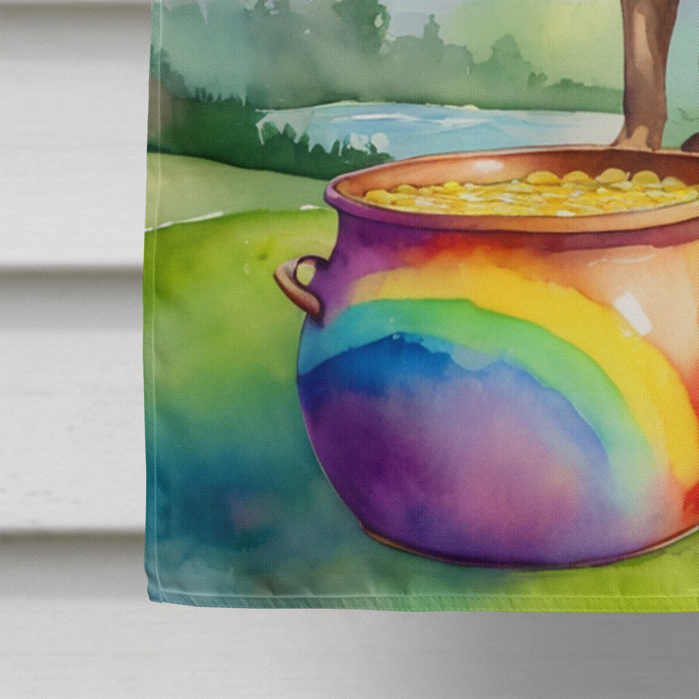 House Flag featuring breed specific Chesapeake Bay Retriever artwork. Celebrate St Patrick's Day with this St Patrick's Day Large Flag. Presenting our Heavy Duty Polyester House Size Decorative Sleeve Pole Flag, a vibrant addition to enhance the aesthetic appeal of your home. This large decorative flag, measuring approximately 28 x 40 inches, offers ample coverage and visibility. Each flag is meticulously sewn and made individually, ensuring a unique piece that may slightly vary in size. It's a sleeve pole flag, designed to fit a standard decorative flag pole effortlessly. Please note that the flag pole and bracket are not included and should be purchased separately. What sets our flag apart is its dual-sided print. The design is mirrored on both sides of the fabric, allowing for uniform visibility regardless of the angle. Printed in full color, our flag showcases vibrant hues that truly stand out. To ensure lasting vibrancy and durability, the dyes are heat-set into the fabric. This ensures your flag remains bright and captivating through various weather conditions. Elevate the look of your home with our Heavy Duty Polyester House Size Decorative Sleeve Pole Flag!