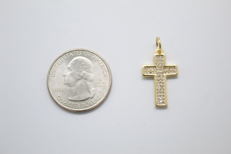 Discover the elegance of our Cross pendant featuring shimmering CZ cubic zirconia. Crafted in high-quality gold-filled material, it measures 22mm x 13mm and is ideal for resale. * Material: 18K Gold Filled* Size: 22mm x 13mm* Quantity: 1 piece (Only Pendant)* Color: Gold