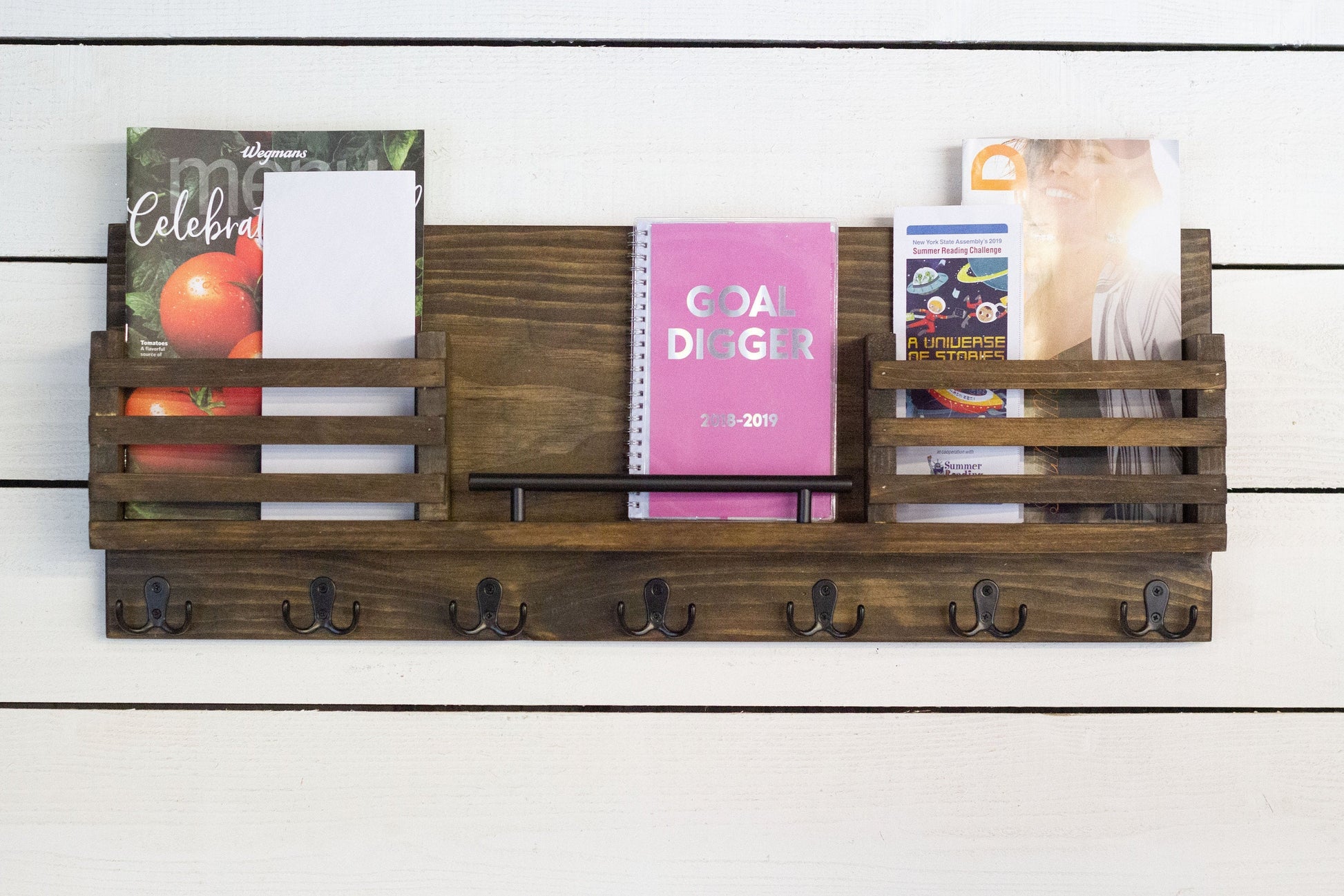 PLEASE NOTE- Hand crafted in NY with new pine. Each piece is custom made from new wood. Wood grain variations and/or knots are to be expected and will vary from the picture shown. Due to the character of wood, sometimes knots or imperfections are present. We feel that slight imperfections help add to the character of our handmade items. Back is unpainted/unstained. *This listing is for an empty mail sorter. Mail sorter does not include letters, flowers, jar or keys* The natural variations in wood products include, but are not limited to... wood grain pattern, color variations, hairline cracks, small dents or scratches, knots, and/or mineral streaks.
