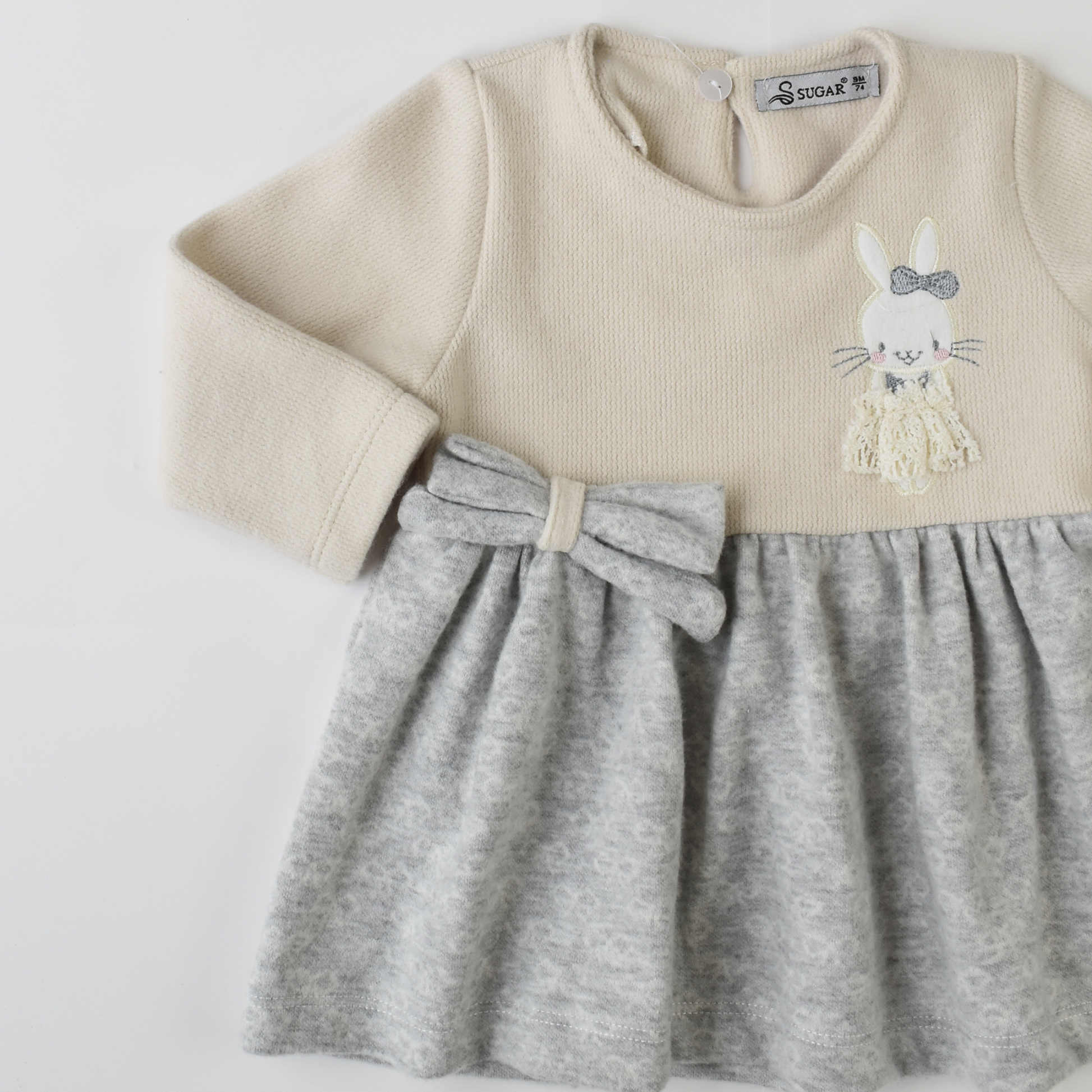This elegant long-sleeved dress (100% cotton) is enhanced by a flared bottom for a timelessly chic look. The long-sleeved cut ensures soft warmth, while the flared bottom adds a touch of classic charm. Perfect for any occasion as well as family photos.