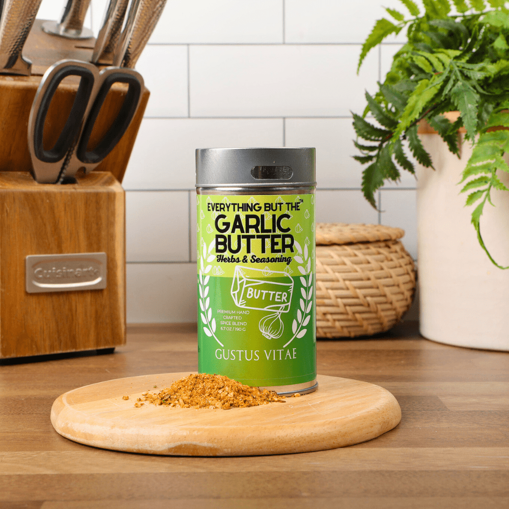 Everything But The Garlic Butter Herbs & Seasoning is your secret weapon for effortlessly adding rich, savory depth to any dish. This ultra-premium, gourmet, hand-made, small-batch blend is crafted with only the best in all-natural, non-GMO ingredients, delivering the indulgent taste of garlic butter without the hassle.
