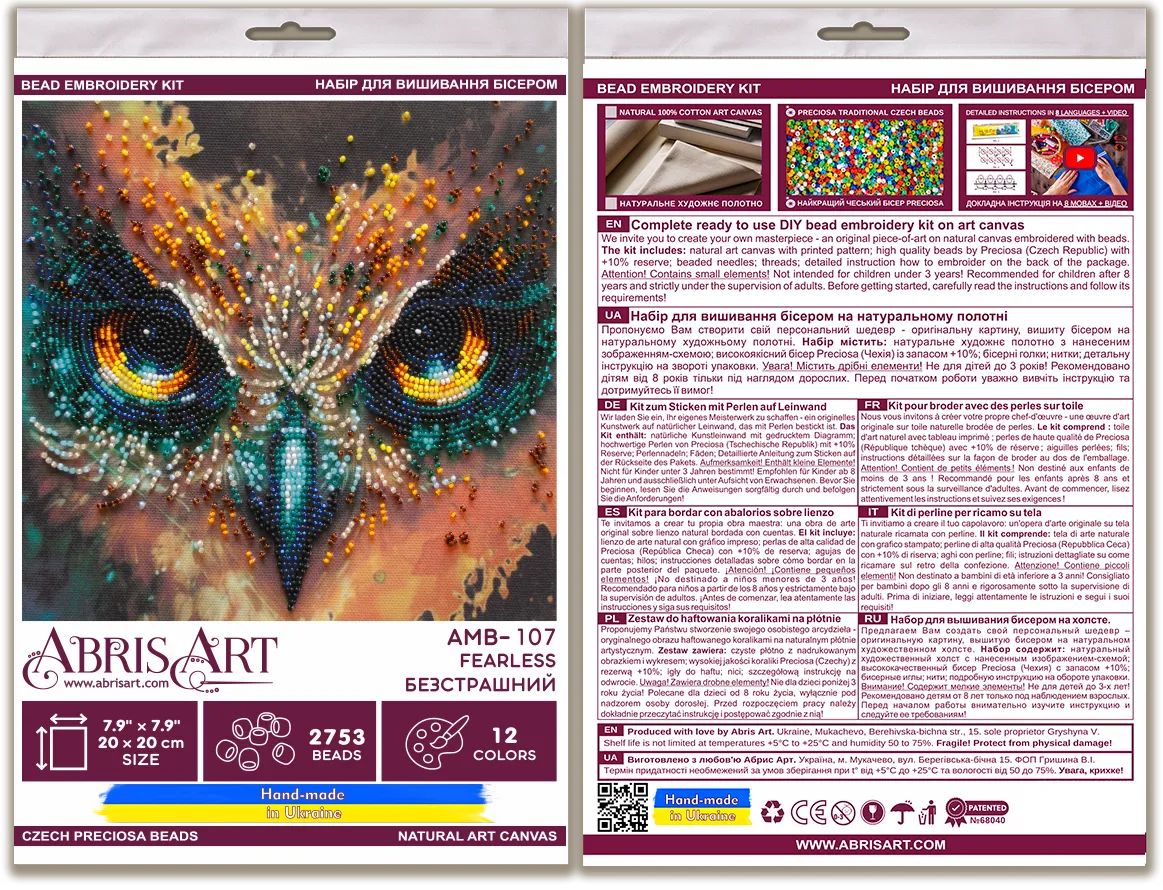 In each carefully assembled box Mid-sized bead embroidery kit Fearless (Deco Scenes) after purchase and delivery you will find: a large piece of natural art canvas with a printed image-scheme (fabric for embroidery) larger than the size of the picture - 200 x 200 mm. - with enough stock to make it convenient to embroider and design the finished picture! The world's best beads Preciosa Ornela (Czech Republic), with "stock" - more than 2753 beads, high-quality bead needles from Japan , and most importantly - detailed instructions, the scheme for beadwork with a key, specially developed by our designers for each plot separately and already applied to the canvas!