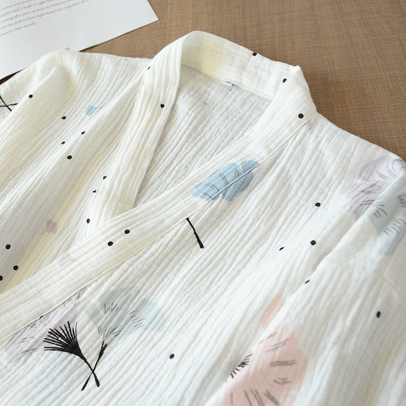 Pure Cotton Yarn Kimono Pajamas V-Neck Printing Plus Size Pijama Mujer Loungewear Women 2 Piece Sleepwear Autumn Fashion