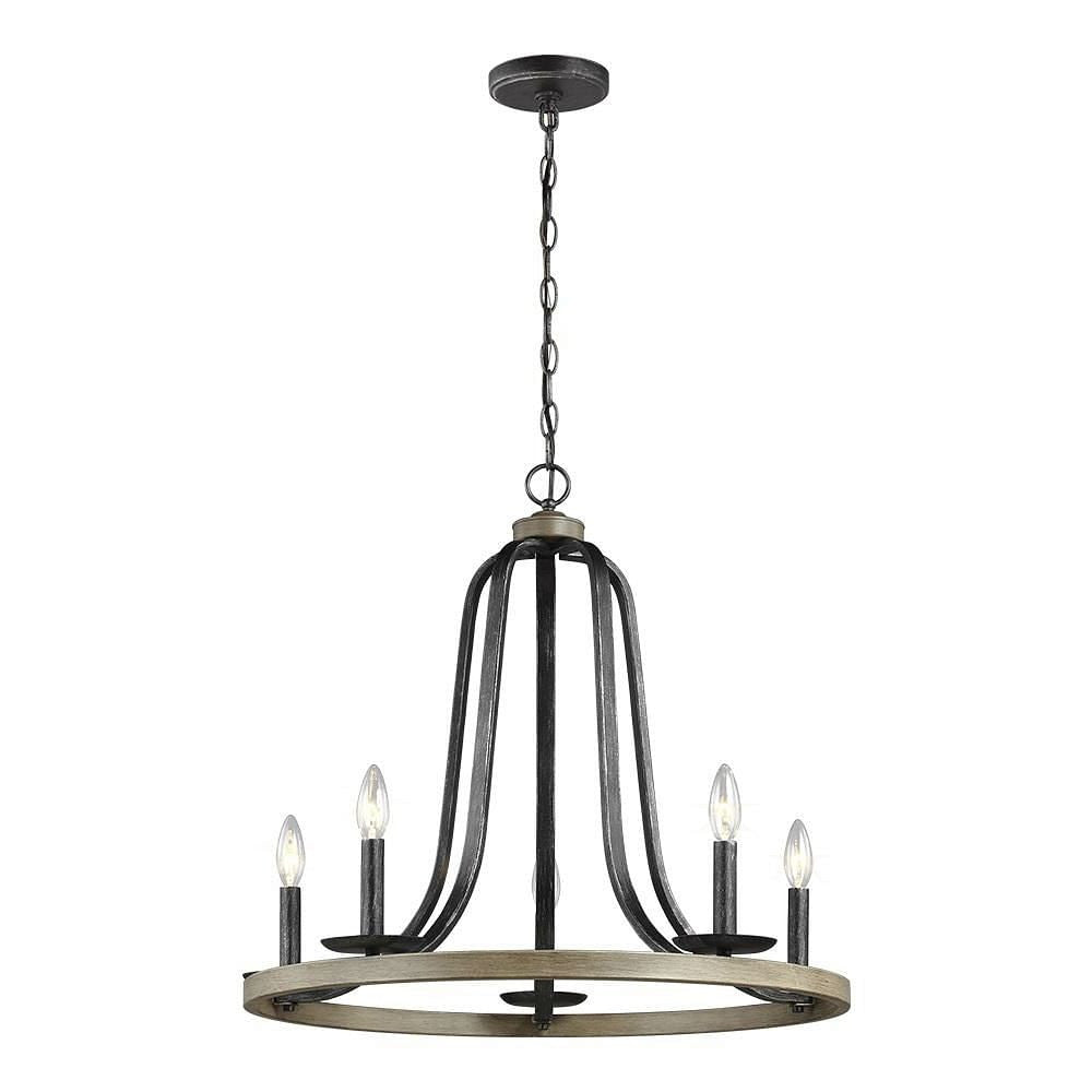 Rustic 5 Light Dimmable Farm Home Circle Metal Chandelier Oak Finish
