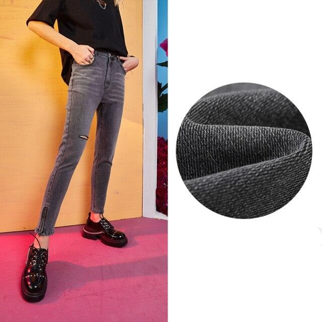 Solid High Waist Washed Casual Denim Jeans Woman,Summer ELF Pure Ripped Hole Chic Sexy Ladies,Daily Trousers
