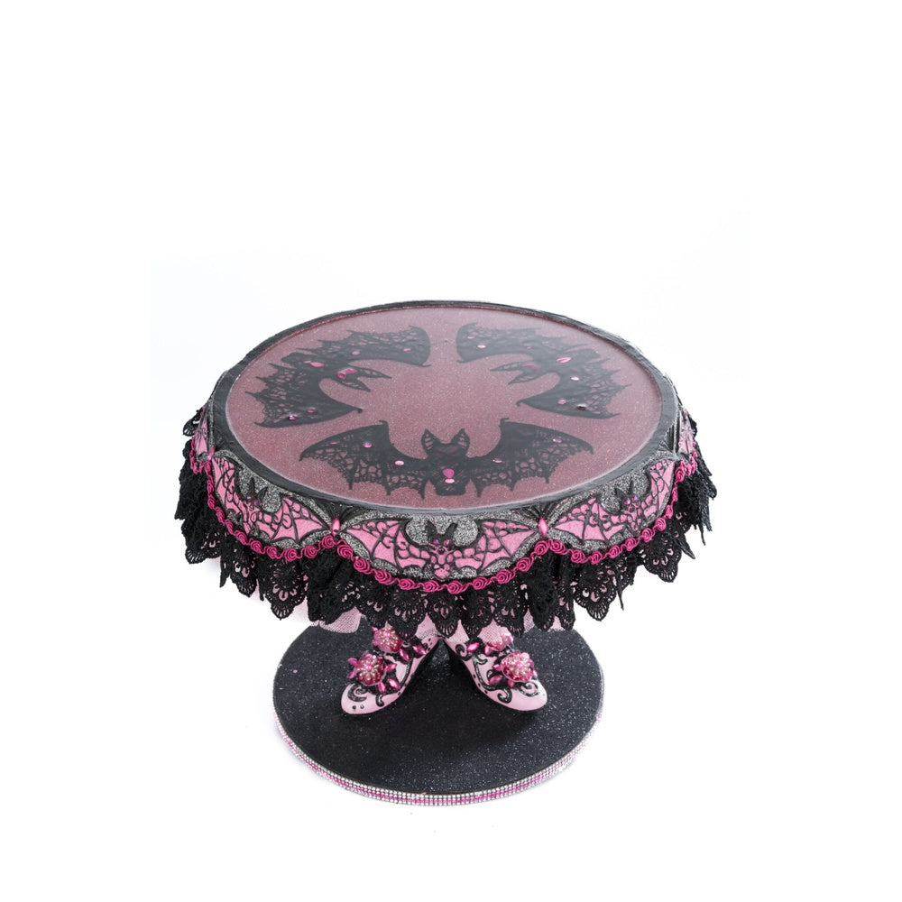 • Cake plate with a beautiful glitter and lace bat wing design under a clear food safe surface